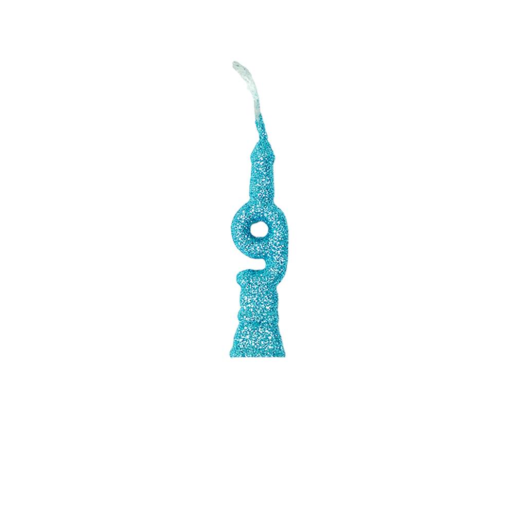 Vela Aniversário Mini Glitter Azul Tiffany Nº 9 Junco