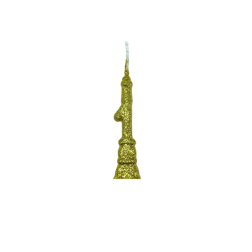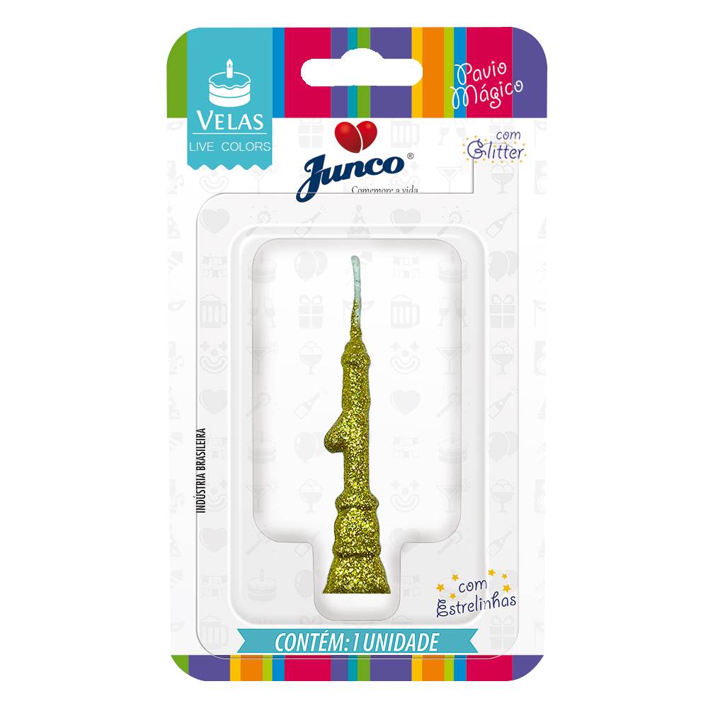 Vela Aniversário Mini Glitter Dourada Nº 1 Junco