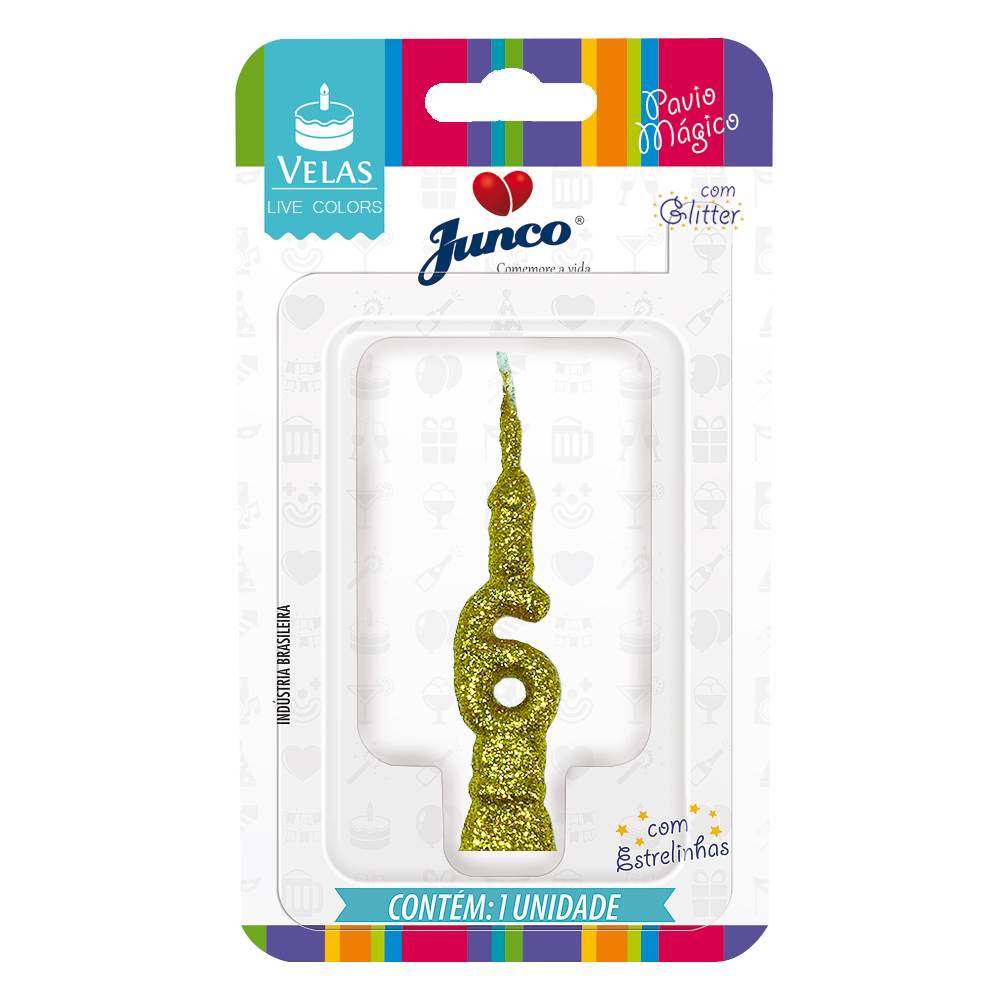 Vela Aniversário Mini Glitter Dourada Nº 6 Junco