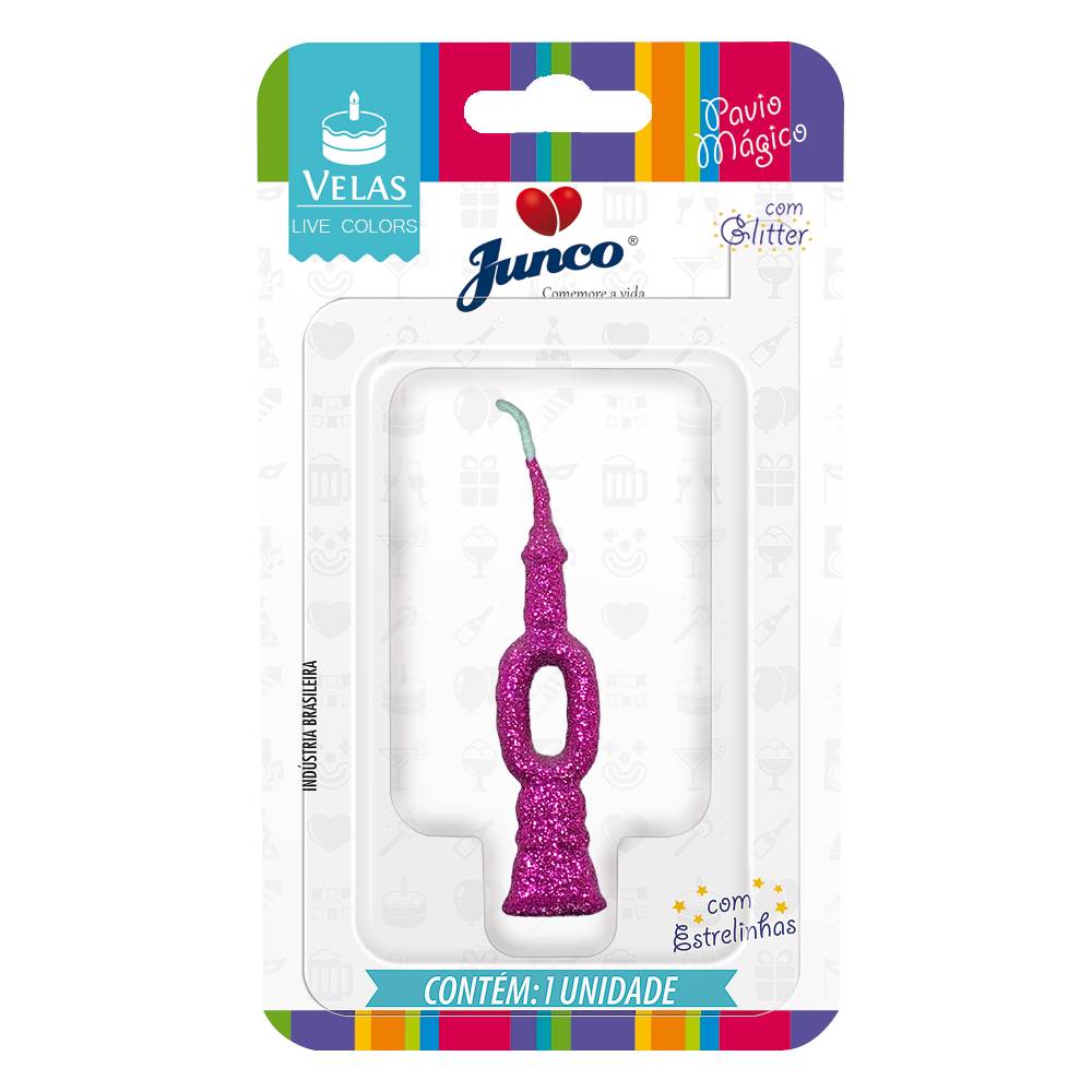 Vela Aniversário Mini Glitter Pink Nº 0 Junco