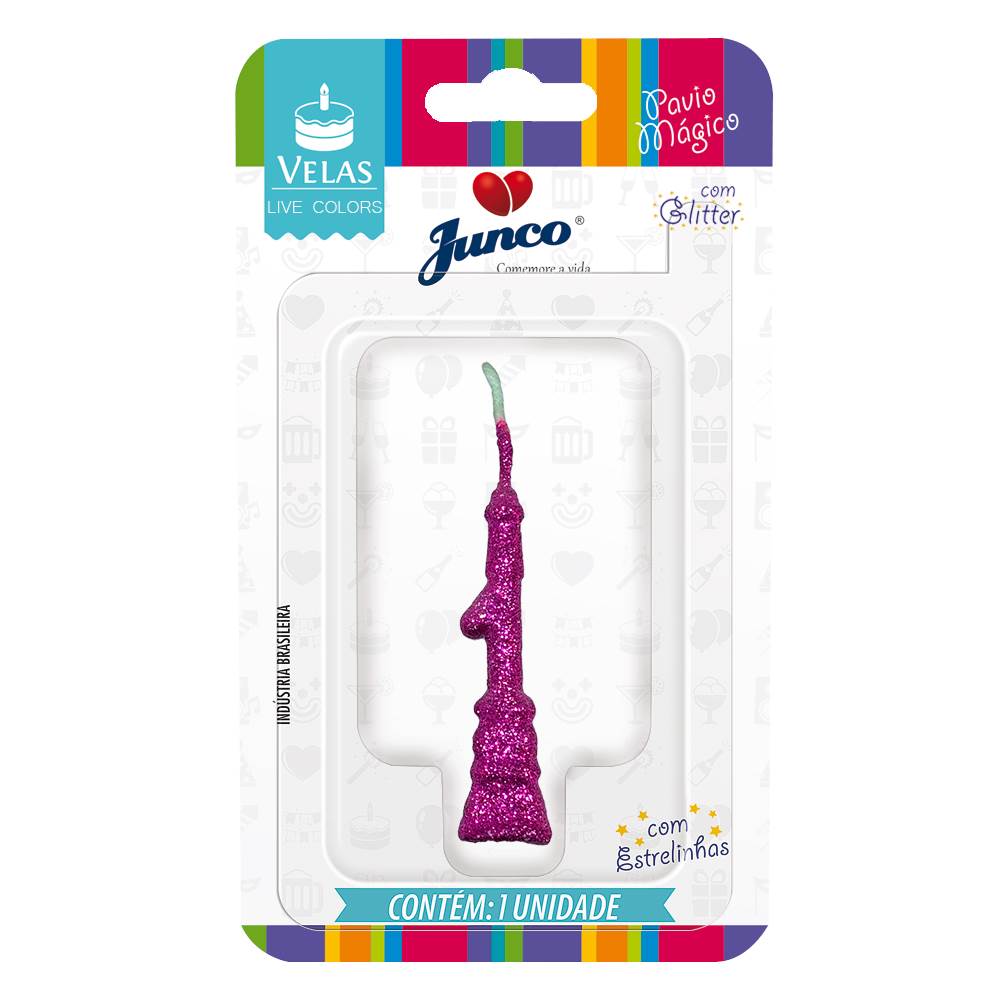Vela Aniversário Mini Glitter Pink Nº 1 Junco