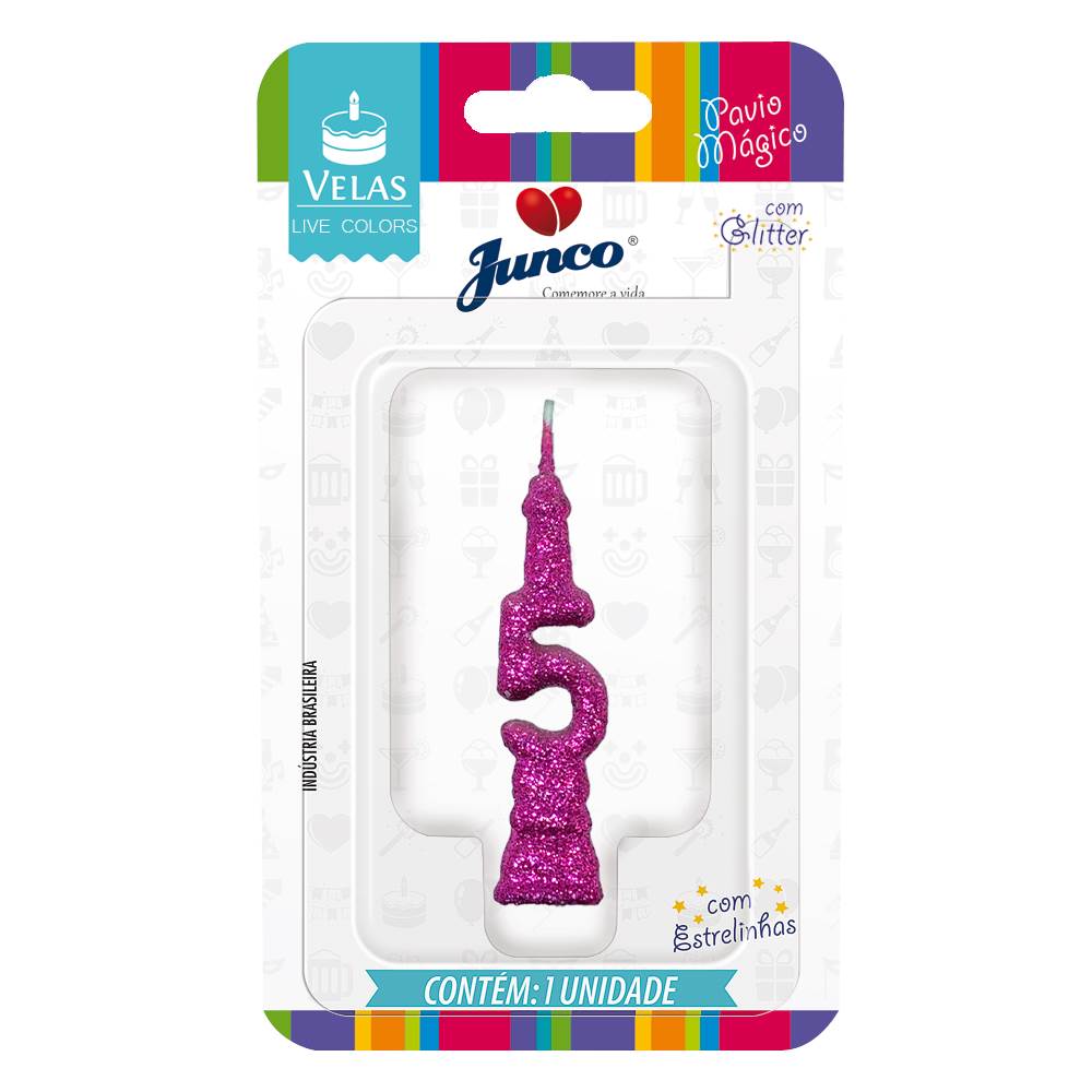Vela Aniversário Mini Glitter Pink Nº 6 Junco