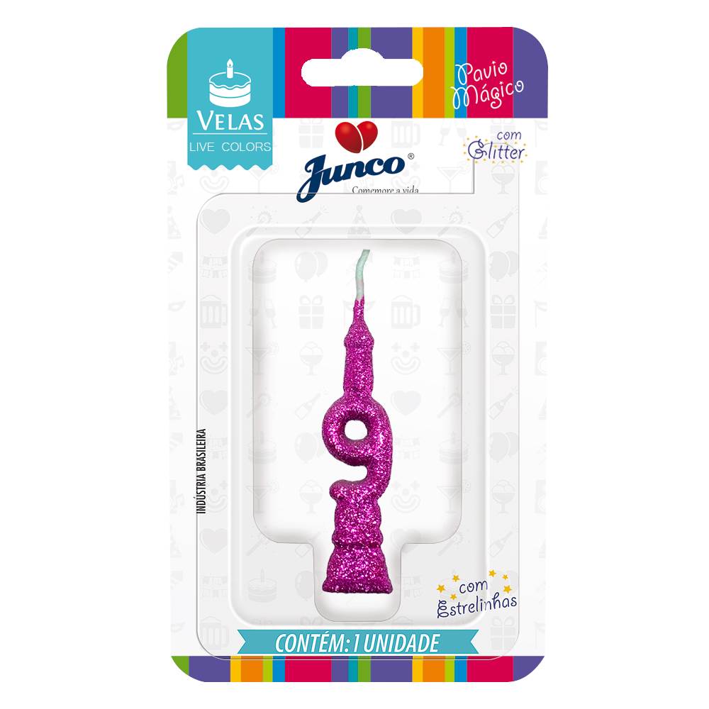 Vela Aniversário Mini Glitter Pink Nº 9 Junco