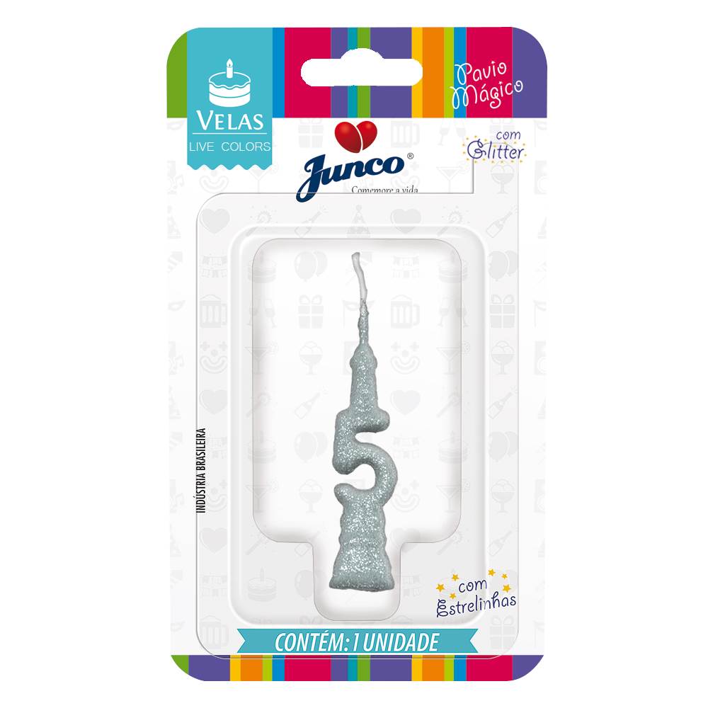Vela Aniversário Mini Glitter Prata Nº 5 Junco