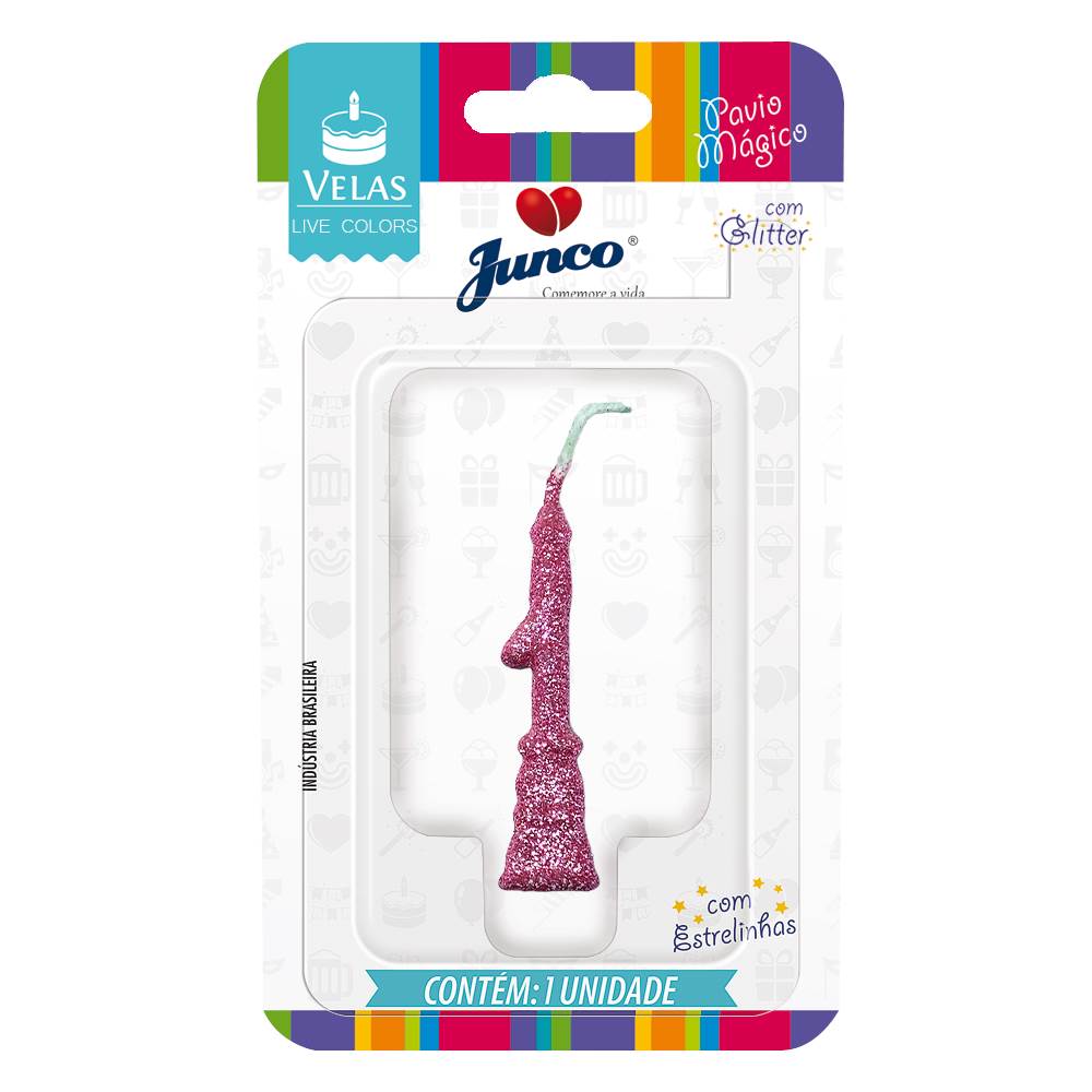 Vela Aniversário Mini Glitter Rosa Bebê Nº 1 Junco
