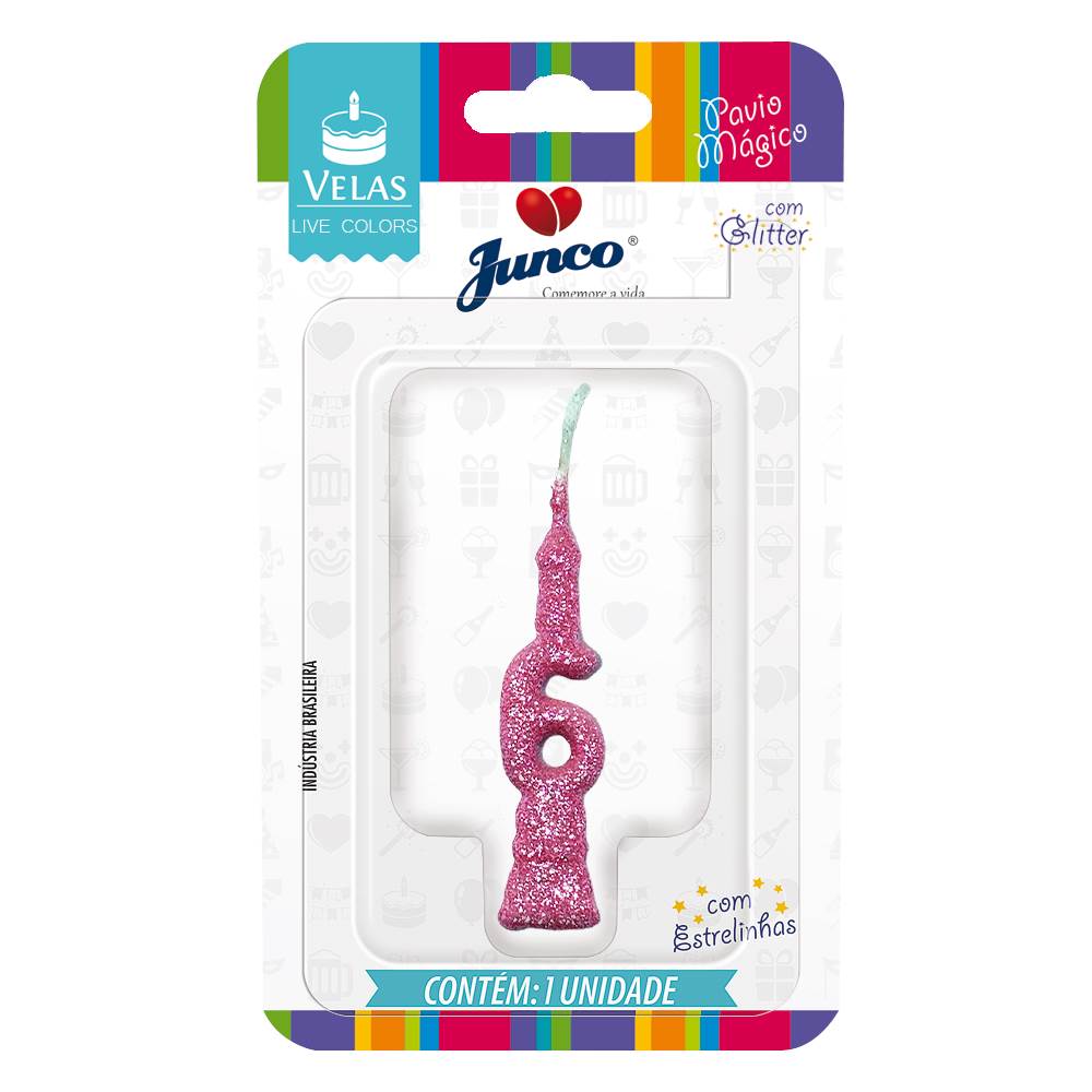 Vela Aniversário Mini Glitter Rosa Bebê Nº 6 Junco