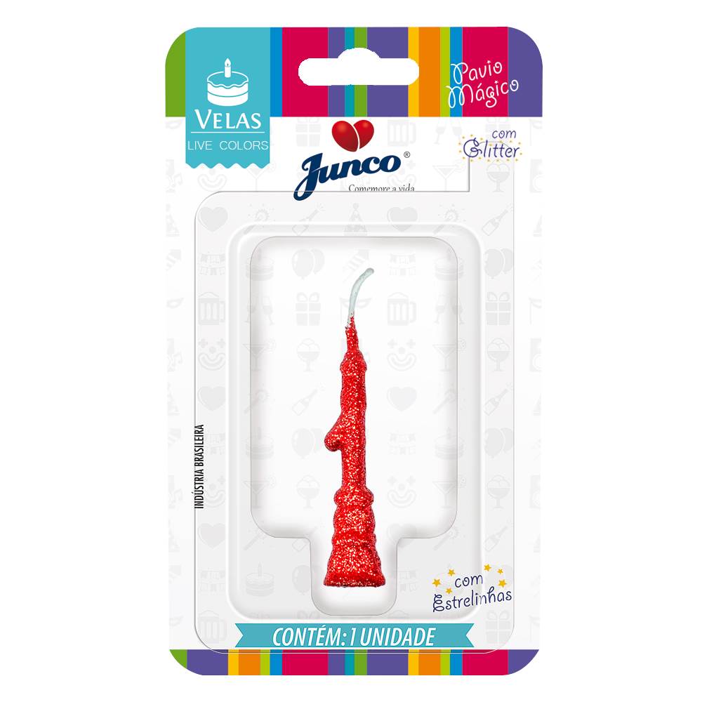 Vela Aniversário Mini Glitter Vermelha Nº 1 Junco