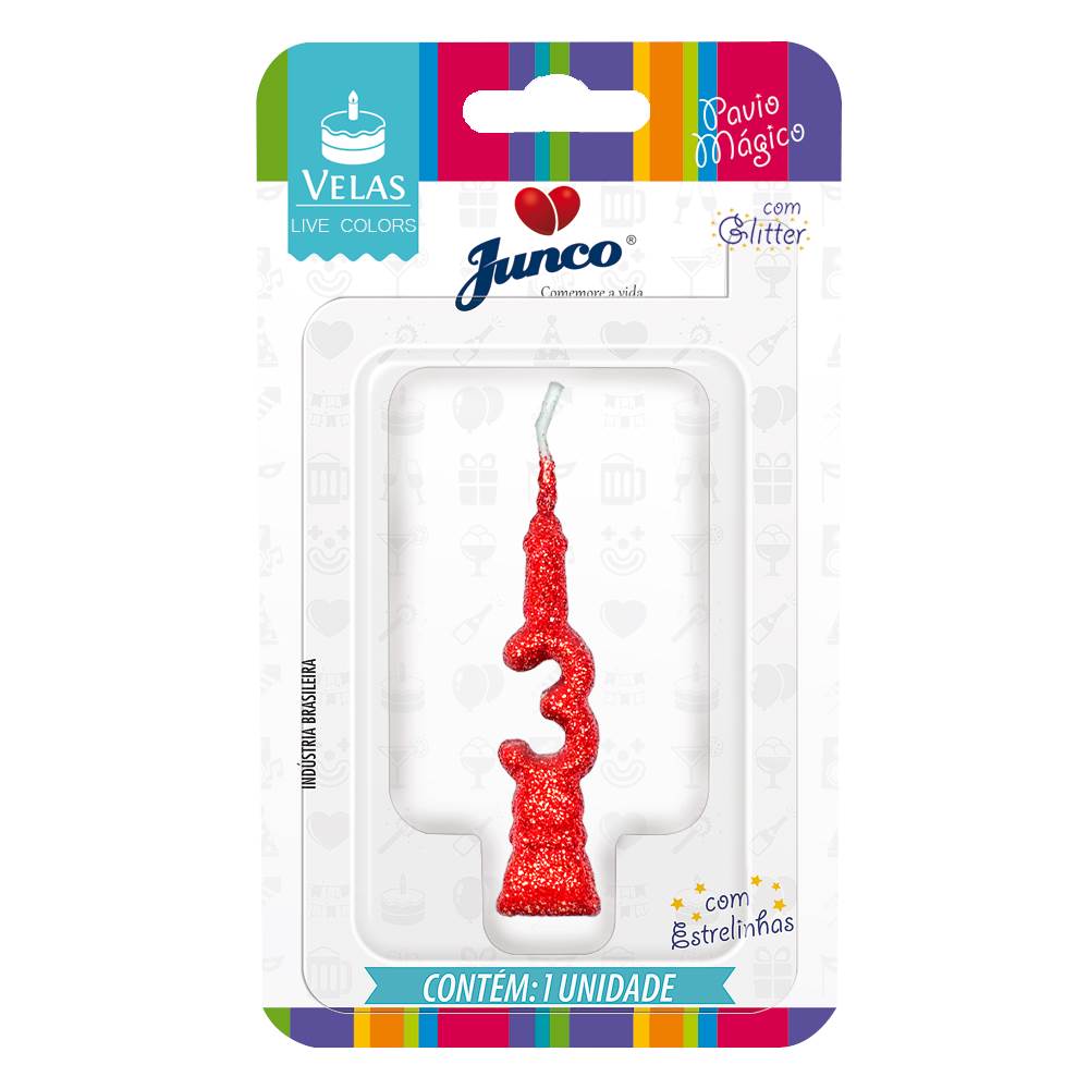 Vela Aniversário Mini Glitter Vermelha Nº 3 Junco