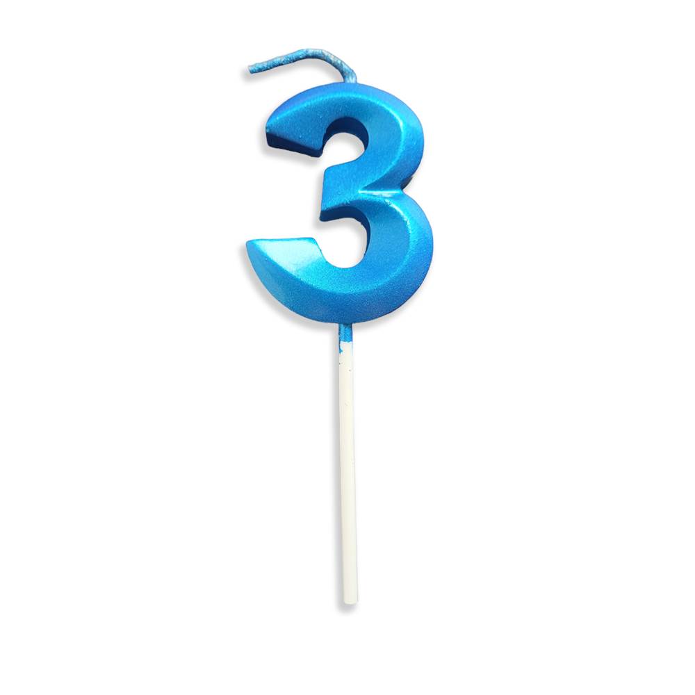 Vela Aniversário No Palito Metalizada Azul Nº 3 Junco