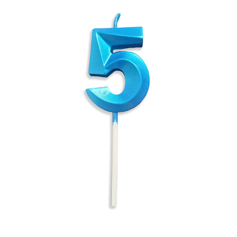 Vela Aniversário No Palito Metalizada Azul Nº 5 Junco