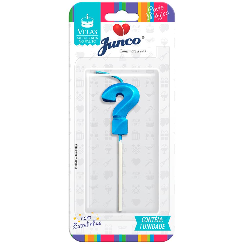 Vela Aniversário No Palito Metalizada Azul Interrogação Junco
