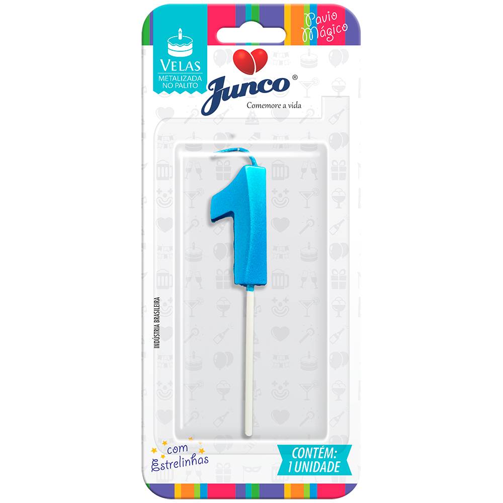 Vela Aniversário No Palito Metalizada Azul Nº 1 Junco