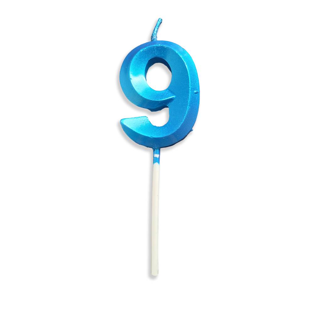 Vela Aniversário No Palito Metalizada Azul Nº 9 Junco