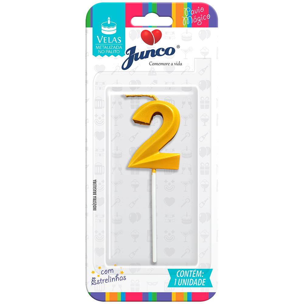 Vela Aniversário No Palito Metalizada Dourada Nº 2 Junco
