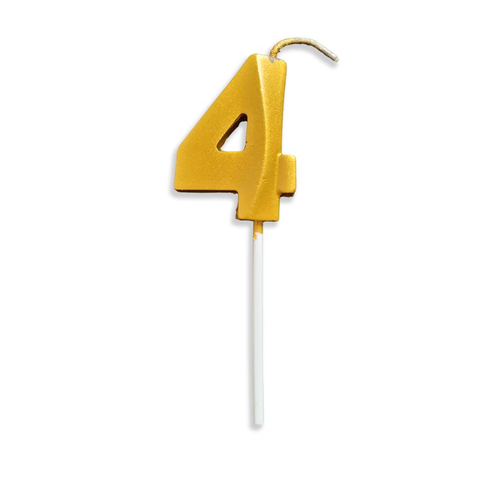 Vela Aniversário No Palito Metalizada Dourado Nº 4 Junco