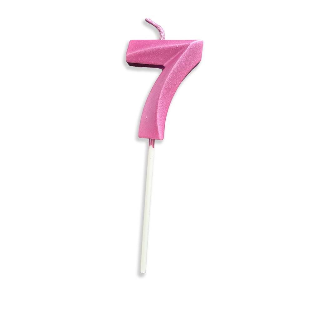 Vela Aniversário No Palito Metalizada Rosa Nº 7 Junco