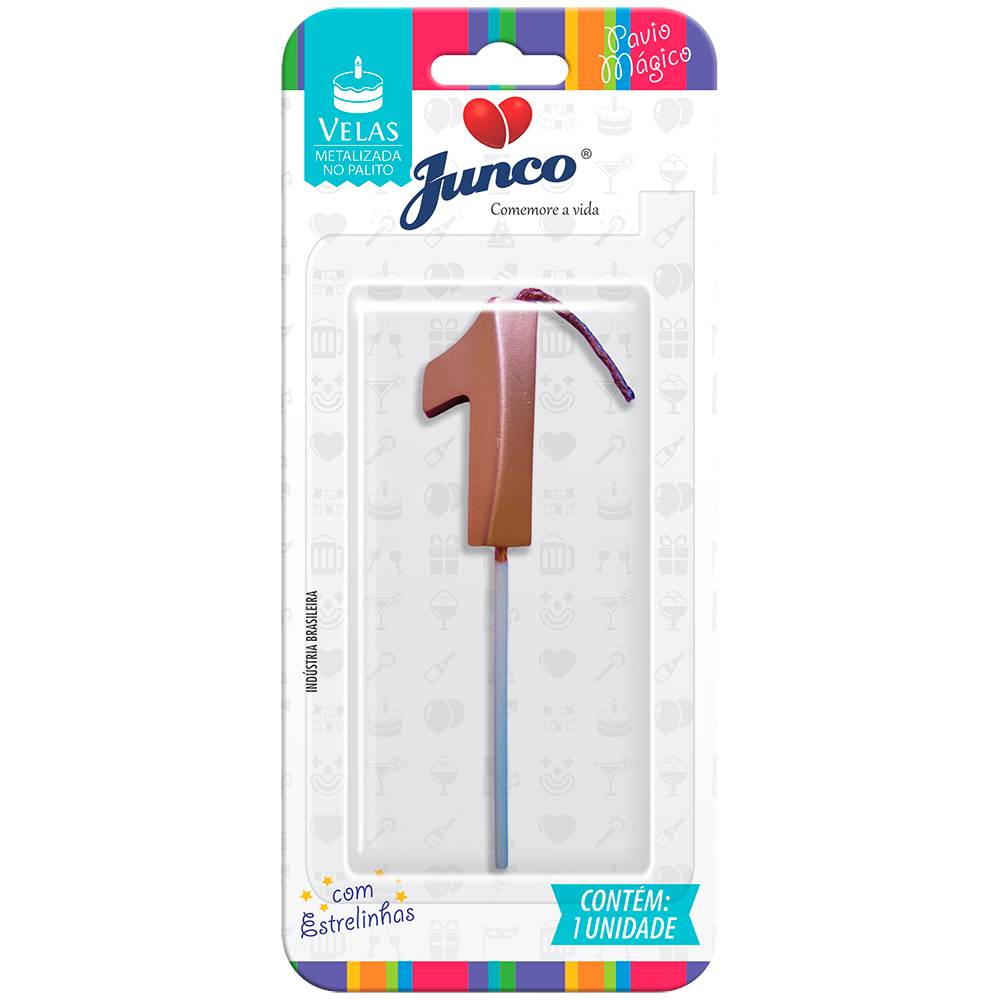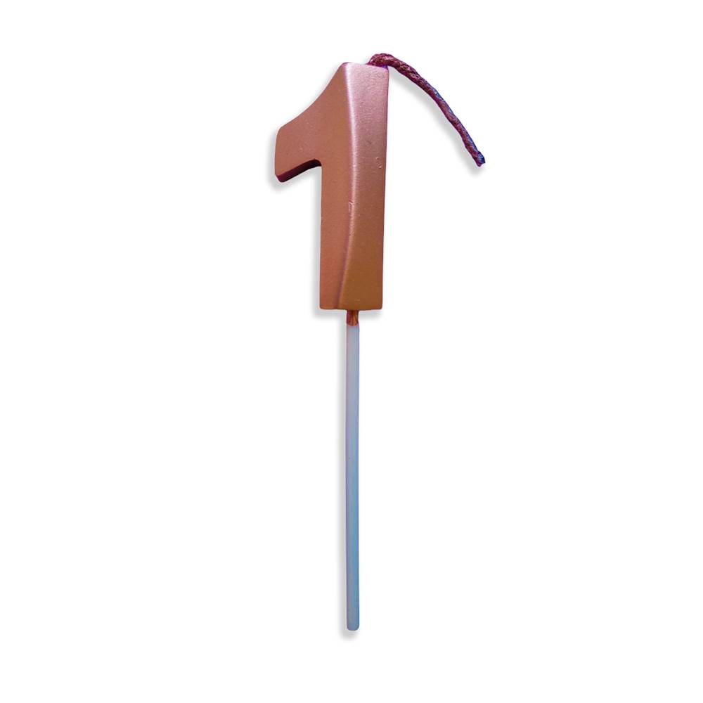 Vela Aniversário No Palito Metalizada Rose Gold Nº 1 Junco