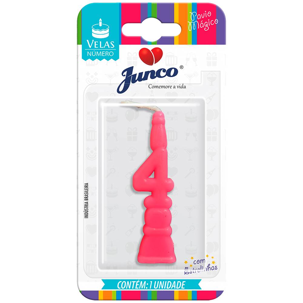 Vela Aniversário Número Rosa Nº 4 Junco