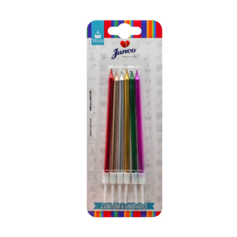 Vela Aniversário Palito Metalizada Colorida Grande Importada Junco