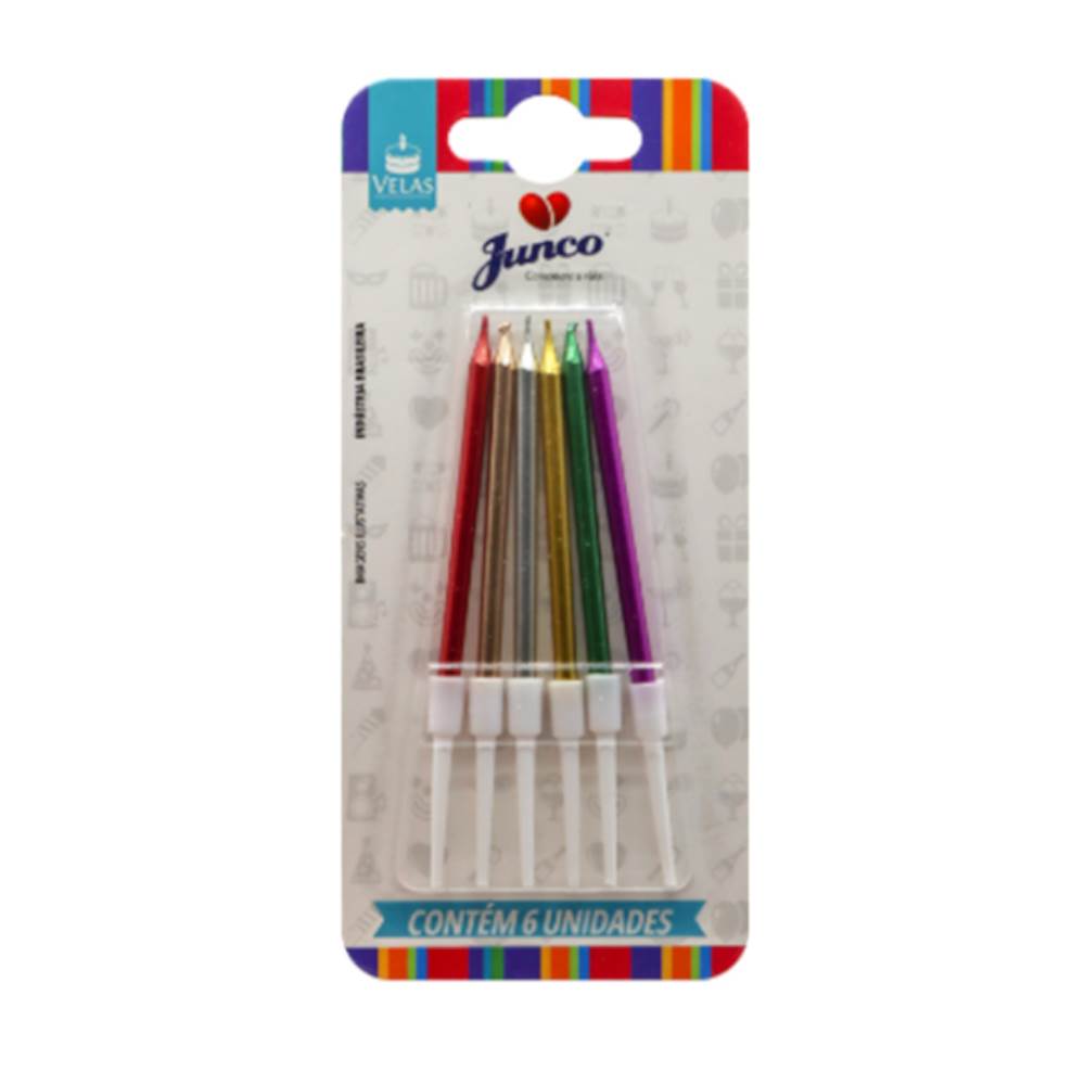 Vela Aniversário Palito Metalizada Colorida Pequena Importada Junco