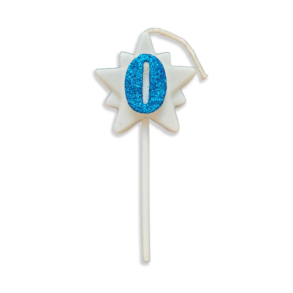 Vela Aniversário Super Star com Glitter Azul Nº 0 Junco