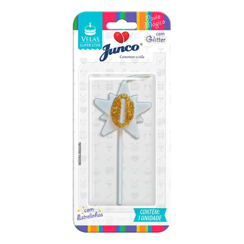 Vela Aniversário Super Star com Glitter Ouro Nº 0 Junco