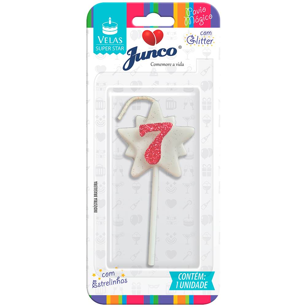 Vela Aniversário Super Star com Glitter Rosa Nº 7 Junco