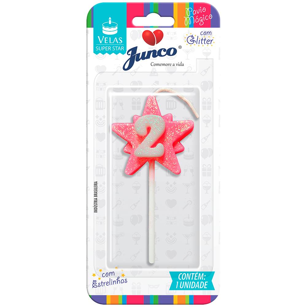 Vela Aniversário Super Star Rosa Nº 2 Junco