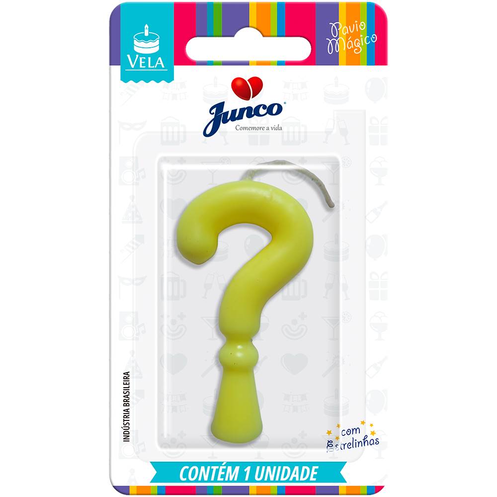 Vela Aniversário Tubular Candy Amarela Interrogação Junco