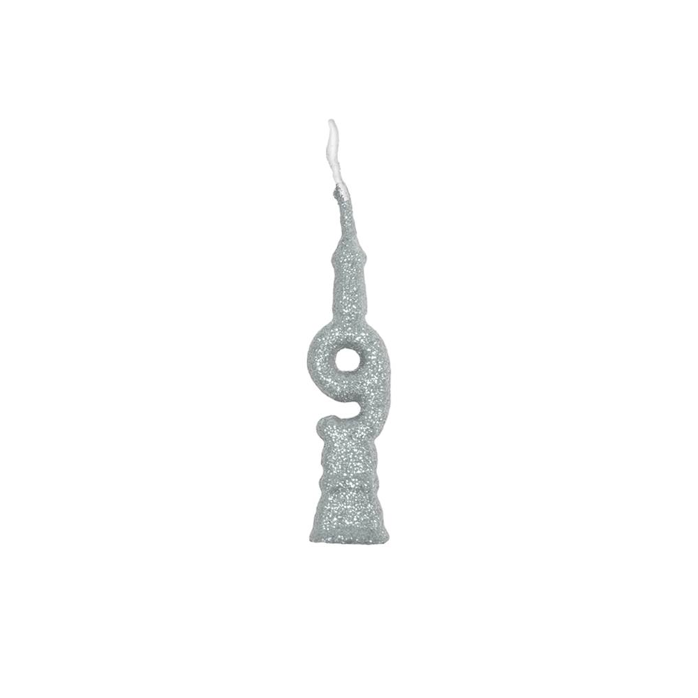 Vela AniversárioMini Glitter Prata Nº 9 Junco